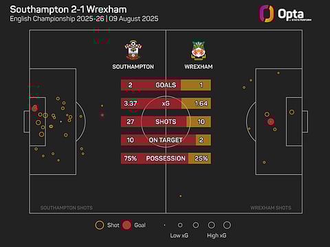 Southampton were ultimately deserving of their victory, having finished the game with 27 shots and 3.37 expected goals (xG), compared to Wrexham's 10 attempts and 1.64 xG, following a dominant second half.