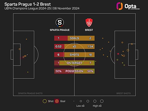 Ten minutes before full-time, Brest had daylight thanks to an own goal from Sparta's Kaan Kairinen, who got the final touch following a scramble on the goal line.
