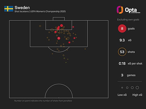 Indeed, in the group stage of Euro 2025, only Sweden can match England in terms of a higher expected goals (xG) figure, with both teams managing 9.3 xG in that metric.