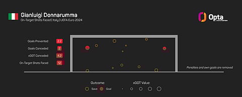 The Paris Saint-Germain goalkeeper made 11 saves for Italy in the group stages, the most by an Italian goalkeeper in that part of a major tournament since Gianluigi Buffon at Euro 2012 (also 11).