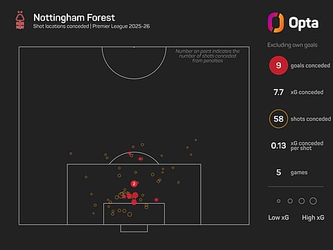 In 2025-26, though, it has been a different story, with Forest one of just four Premier League sides yet to keep a shutout. They also have the fifth-highest xG against of 7.7, having conceded the fourth most goals in the division (nine).