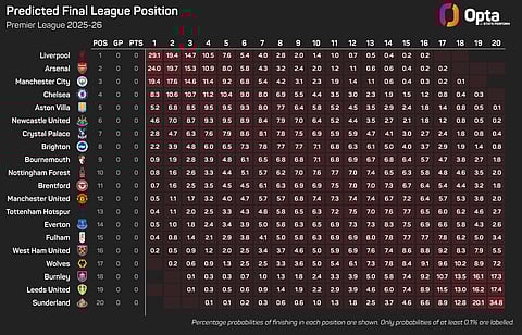 Arsenal are expected to be in the mix for the title once again this year, with the Opta supercomputer rating their chances at 24%, but that is behind Liverpool's 29.1%.