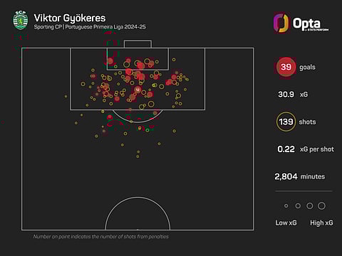 Last season, Gyokeres averaged a goal every 71.9 minutes in the Primeira Liga – only Ricardo Pepi (62.1) and Vasil Kusej (67) averaged a lower minutes per goal among forwards to score more than 10 goals in Europe's top 10 leagues.