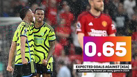 Arsenal only allowed opponents to create a total of 5.89 xG in those matches, an average of 0.65 per game. The league's next-best ever-present defensive team this year, Man City, have given up 12.39 xGA in 10 road trips.