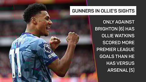 Watkins capped April's 2-0 win at the Emirates with a delightfully dinked finish that put Arsenal on the back foot in the title race, his fifth goal in eight Premier League meetings with the Gunners.