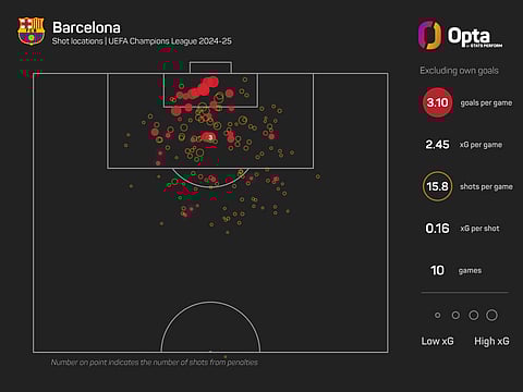 But their impressive displays in the competition this season have been helped by their star-studded attack. Barcelona have scored 32 Champions League goals this campaign, their most since 2011-12 (35). The only other time they've netted more than their 32 this term was in 1999-00 (45, a competition record).