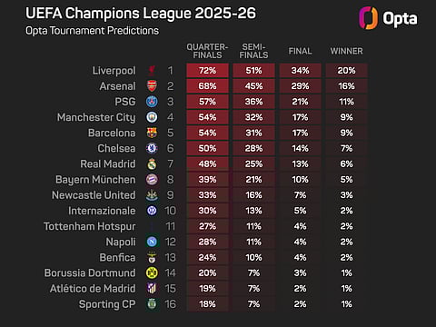 When it comes to the overall tournament predictions, the model actually gives Chelsea a higher probability of becoming European champions than Bayern, with the Blues' chances ranked at 7% and Bayern's at 5%.