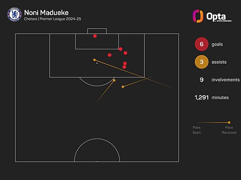 Only Cole Palmer (14) and Nicolas Jackson (nine) have bettered Madueke's six league goals for Chelsea this season, with only the former (77) attempting more shots than the winger (61) despite Maresca rotating his wingers heavily.