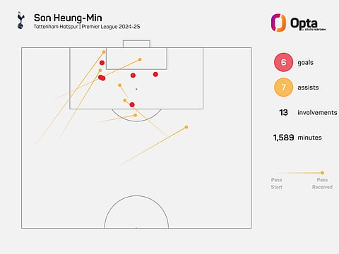 In assisting Pape Sarr's effort against Brentford, Son became Spurs' outright leading assister in the Premier League, with 69 to his name, overtaking Darren Anderton (68).