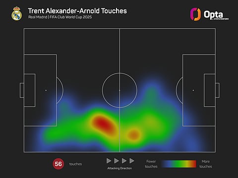 Only Valverde (17) played more passes in the final third than Alexander-Arnold (16), though the full-back did lose possession 12 times, more than any other Madrid player.