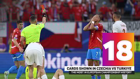 Turkiye have been shown 16 yellow cards at this tournament so far, the most ever by a team in a single group stage in the tournament's 64-year history.