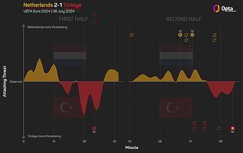 Turkiye were on course for a semi-final against England when Samet Akaydin's header put them 1-0 up against the Netherlands in Saturday's last-eight clash.