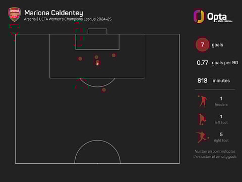 Caldentey has seven Champions League goals this season, with Barca striker Claudia Pina (10) the only player to outscore her.