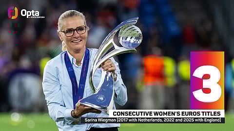 England are the second nation to retain the Women's Euros title, after Germany, who won the tournament in 1989 and 1991, then triumphed six times in a row from 1995 to 2013.