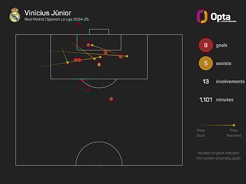 Vinicius, who was named the Best FIFA Men's Player award for 2024, has also netted 14 goals in all competitions and registered eight assists.