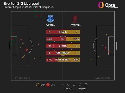 They mustered just six shots to Everton's 10, also losing the expected goals (xG) battle 0.98 to 0.65.