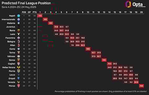 Despite their poor away from, the Opta supercomputer hands Juventus a 70.8% chance of finishing in the top four, compared to Roma (24.5%) and Lazio (4.8%).