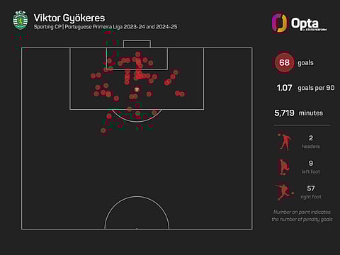 Gyokeres' 68 league goals in the last two seasons are the most of any player in Europe's top 10 divisions, with Bayern Munich's Harry Kane second with 62 goals in that span.