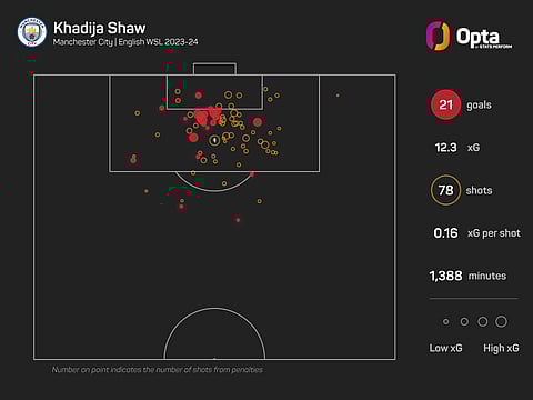 Shaw has scored a remarkable 50 goals in just 57 WSL appearances, netting once every 81 minutes on average. The Jamaica star is a ruthless finisher, outperforming her expected goals (xG) figures by almost 15 goals during her time in the WSL while already tallying 242 shots (4.2 per match), 104 on target (1.8 per game).