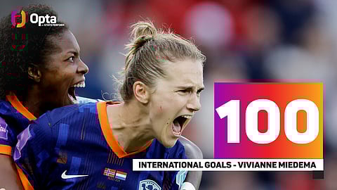 Miedema is the 19th woman to score 100 international goals, but only the sixth European.