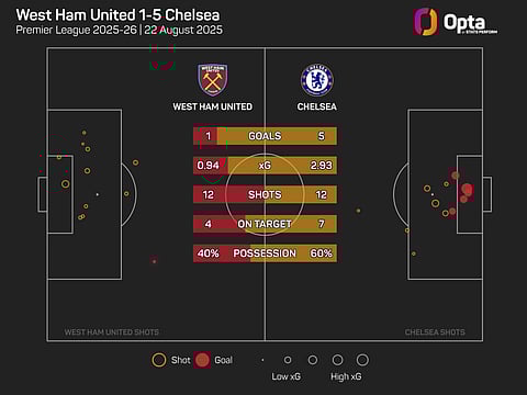 Lucas Paqueta's long-range stunner put West Ham ahead in the sixth minute, but goals from Joao Pedro, Pedro Neto and Enzo Fernandez had Chelsea 3-1 up by half-time, before Moises Caicedo and Trevoh Chalobah got in on the act in the second half.