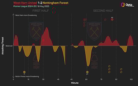 While Forest could yet gatecrash the top five, West Ham's campaign ends with a five-match winless run at the London Stadium (three draws, two losses), while this is the first time they have lost their final home game of a Premier League season since 2016-17.