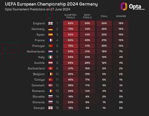 The Opta supercomputer gave Ronald Koeman's Oranje a 5.1% chance of winning the trophy before a ball was kicked, and that is now up to 7% despite their struggles, due to Romania, Austria and Turkiye being the other teams in their quarter of the draw.