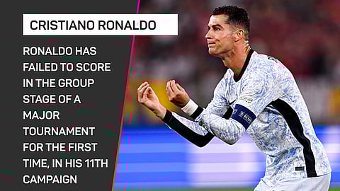 He failed to score in the group stages of a major international tournament for the first time in his career, with this his 11th competition with the Selecao, who he has now played for on 50 occasions at major tournaments (a European record).