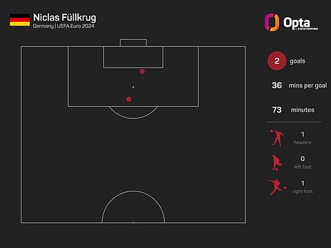Musiala is not the only home favourite in contention to top the goalscoring charts, though, with super sub Fullkrug proving the direct route can be an effective option with two goals in just 73 minutes of action off the bench.