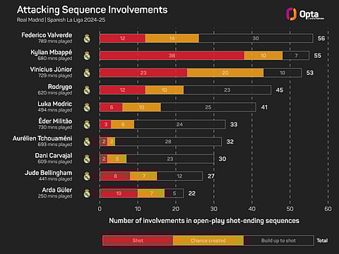 No player in Europe's top five leagues comes close to matching Vinicius for attempted dribbles (366), though the 24-year-old ranks seventh for dribbles completed (141).