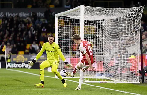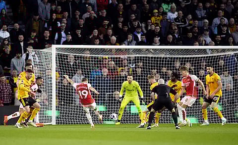 But they returned to the summit of the Premier League thanks to goals from Leandro Trossard and Martin Odegaard at Molineux, moving a point above Manchester City, who have a game in hand.