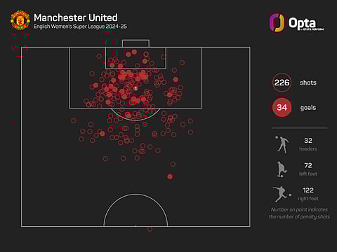They face a stern United defence, which could see them struggle with only a 20% shot conversion rate in 2025 (12 goals from 61 shots). The hosts, meanwhile, have scored with 40% of their shots on target in the WSL this term (34/84), the best rate of any side.