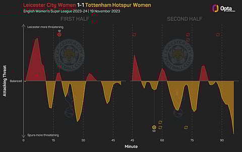 Tottenham have faced Leicester more often without losing than any other opponent in the WSL (W6 D1), but they have lost each of their last five league matches, drawing a blank in four of those.