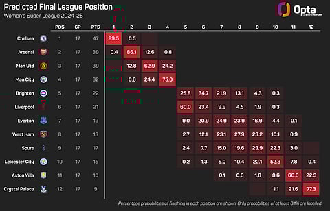 Brighton, meanwhile, have just an 11.5% chance of winning and a 14.8% probability of earning a draw. They have won just one of their 12 WSL meetings with City (D1 L10), with their only victory coming on the road in November 2023 (1-0).