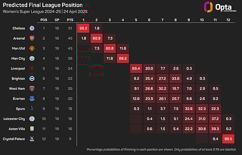 They are currently given an 11.8% chance of overtaking United to finish third, with the Opta supercomputer expecting them to finish fourth by May 10.