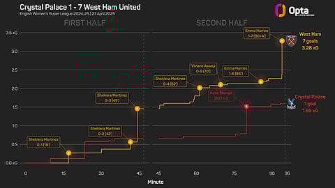 But, West Ham are also coming off the back of a huge victory – their 7-1 thrashing of Palace was their biggest-ever WSL win and also set the record for their best-ever goal return (32) in a single WSL season in the process.