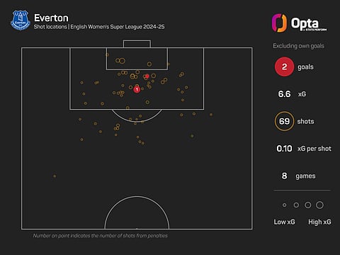 At the other end of the pitch, ninth-placed Everton have been one of the WSL's worst performers, netting just three times, with one of those being a penalty and another being an own goal.