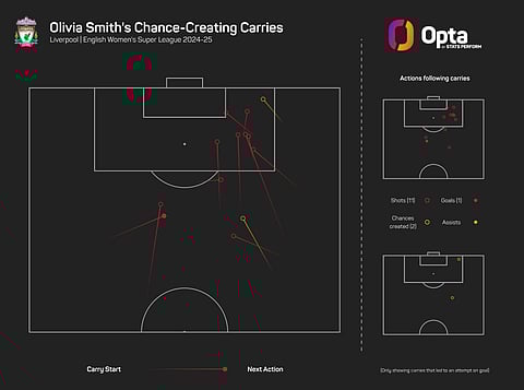 Liverpool, meanwhile, brought in 20-year-old Canada international Olivia Smith ahead of the campaign and she has recorded a league-high 11 shots following carries.