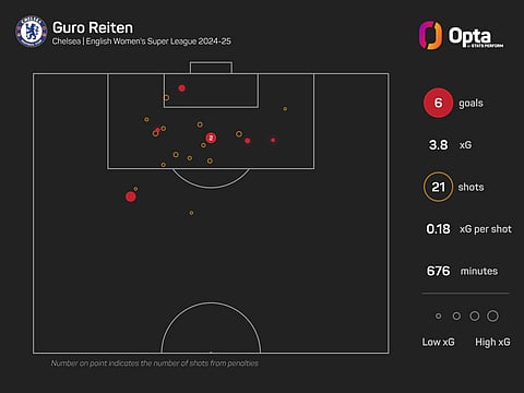 Guru Reiten has been the standout Chelsea star and is having a stellar season. Only Khadija Shaw (seven) has scored more goals in the WSL this term than Reiten (six).
