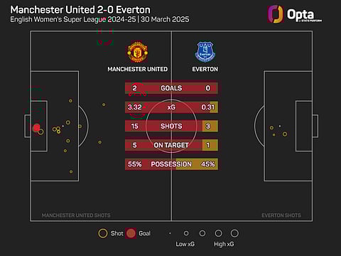 In the day's first fixture at the Leigh Sports Village Stadium, United produced a dominant display in a 2-0 victory over Everton, while Arsenal brushed aside bottom club Crystal Palace 4-0.