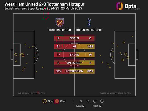 Spurs won 46.9% of the simulations, which perhaps is not a surprise given that the Hammers earned just five points on the road in the WSL in 2024-25, though four of those came in their final three such matches (W1 D1 L1).
