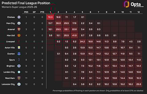 And she is not expected to end that run on Friday, with Chelsea firm favourites for a win with the Opta supercomputer at 61.3%. City's hopes of an upset sit at 18.3%, while they only have a further 20.4% chance of taking a point.