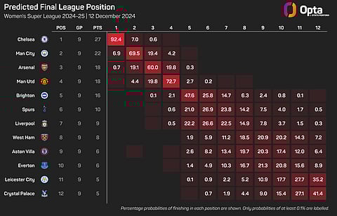 Palace sit bottom of the table and are expected to remain there for Christmas, with the supercomputer only giving them a 13.6% chance of earning three points. United, meanwhile, are given a 69.6% chance of victory and a 16.8% probability of a draw.