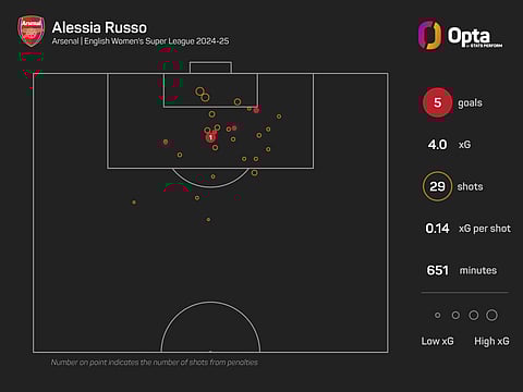 The main threat to Liverpool could be Alessia Russo, who endured a slow start to the season but has since scored in four straight WSL games. She could become just the sixth Arsenal player to net in five in a row, and the first since Mead in May 2022.