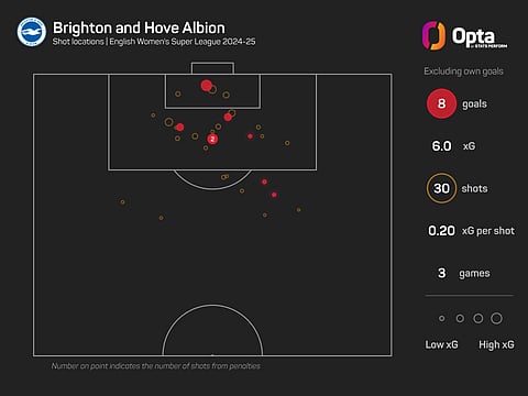The Seagulls' two wins so far are as many as they managed in their last 11 outings in the WSL last season, and they are sure to cause problems at the top of the field – they have the best conversion rate in the league this campaign (26.7%), netting eight times already.