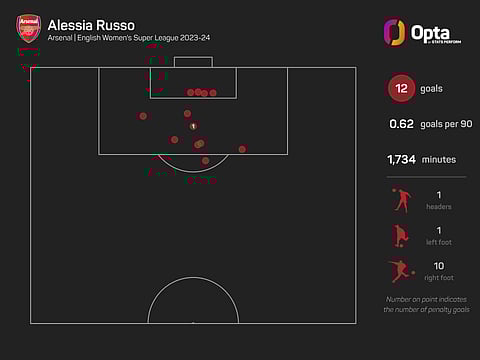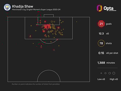 Chelsea had 429 shots in the WSL, the second-highest total after Arsenal (436). They averaged 0.13 xG per shot, a higher total than any team in the division. Lauren James was the joint second-highest scorer in the WSL last season, with 13 goals. The England international greatly outperformed her 6.1 xG, showing high-level finishing and demonstrating clear improvement in that area of her game.