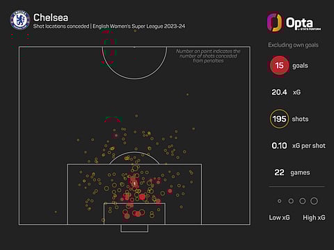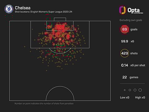 Chelsea accumulated 59.87 xG, the most in the league, over four more than next-best Arsenal (55.48).