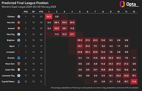 But hot on Chelsea's heels are Manchester United, with Elisabeth Terland's sixth-minute stunner earning the Red Devils a 1-0 win over Tottenham in the final game of the day.