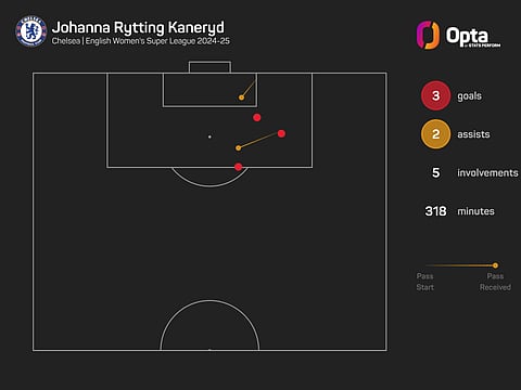 She has already racked up a league-high five goal contributions, half of what she managed across the whole of last season. Her six chances created are the second-most in the Chelsea team, making 1.7 per 90 minutes, and she will be key to their title hopes if she can maintain this level.
