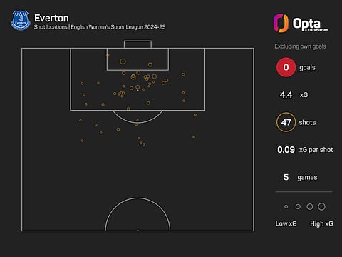 They have scored just once, an own goal by Camila Saez against West Ham, meaning they have the biggest xG underperformance, having created 4.42.